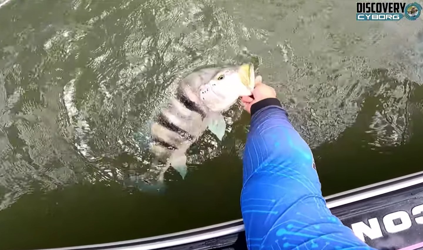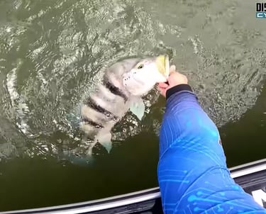 O clímax do dia chegou de forma avassaladora. O ataque foi violento e, enquanto a luta se desenrolava, a minha mente dividia-se entre a adrenalina do combate e o instinto de criador de conteúdo, garantindo que as câmaras estavam a gravar para imortalizar o momento. O peixe não saltava; movia-se com uma força bruta, "igual um submarino", arrancando linha do carreto sem esforço. Quando finalmente o vimos, a reação a bordo foi de puro choque e espanto. "Nossa Cadu que isso mano!", "meu Deus do céu", era simplesmente o maior peixe que eu já tinha visto. Um tucunaré "obeso", "gigantesco". Para tornar a captura ainda mais especial, notámos uma característica invulgar: o peixe tinha seis poros na linha lateral, um detalhe que o torna um exemplar raro. A fita métrica apenas confirmou o que os nossos olhos não queriam acreditar: 62,5 cm. Um novo recorde pessoal e a materialização do sonho de qualquer pescador.
